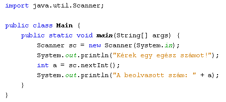 (billentyűzet input) paramétert használja. Az egész típusú