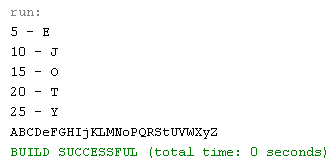 Az alábbi program egy string típusú változóban tárolt kétsoros szöveget - karakterenként feldolgozva - ír ki egy szöveges állományba. Ha nem jelölünk ki pontos elérési utat, akkor a fájl a Java projekt főkönyvtárában jön létre. Mivel könnyen lekérdezhető a string hossza, a karakterek feldolgozása nem okoz gondot.