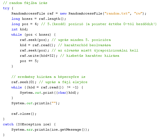 csak olvasás: RandomAccessFile("input.txt", "r")