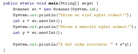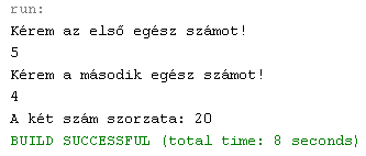 9.7.1. Kérjünk be két egész számot a billentyűzetről, és írjuk ki a képernyőre a szorzatukat!