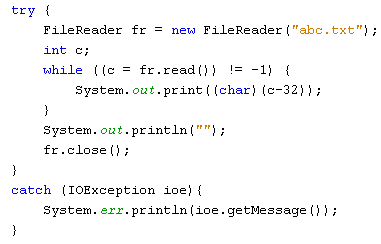 9.7.2. A FileWriter és a FileReader osztályok segítségével írjuk ki az abc.txt fáljba az angol abc kisbetűit! Utána olvassuk be a fájlt, és az abc-t - nagybetűsre alakítva - írjuk ki a képernyőre!