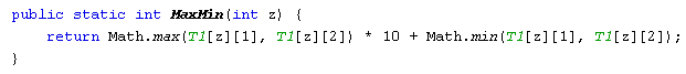 A feladat megoldásához érdemes írni egy saját metódust, amely a végeredmények gólszámából egy olyan számot állít elő, amelynek tízes helyiértékét a nagyobb-, egyes helyiértékét pedig a kisebb gólszámok adják. Így a végeredményeket egységesítve sokkal könnyebb a feldolgozásuk.