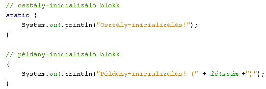 Inicializáló blokkok: