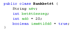 Lássuk ugyanezt az osztályt két kezdőértékadással rendelkező