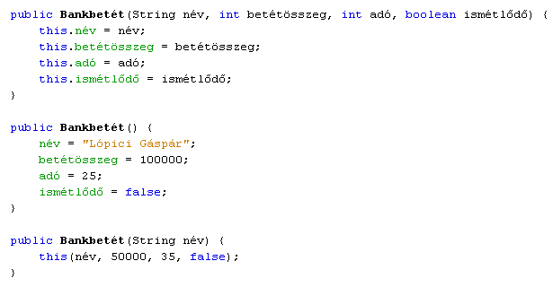 A metódusokhoz hasonlóan ha egy konstruktorban olyan változó-