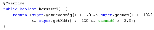 korszerű() metódus felülírása a