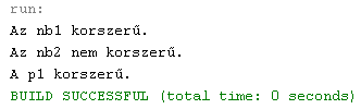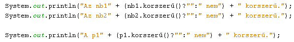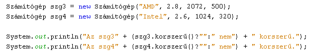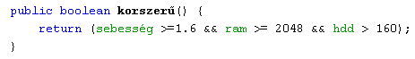 15.4.4. Módosítsuk a Számítógép osztály korszerű() metódusát úgy, hogy az alábbi feltételek teljesülése esetén a Notebook és a Pda osztály példányait is - a kategóriájuknak megfelelő paraméterekhez viszonyítva - minősíteni tudjuk! Jelenítsük meg a képernyőn a már létező nb1, nb2 és p1 példányok minősítését!
